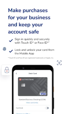 Start banking with East West Bank Business¹ Mobile app today! Manage your accounts, make wire transfers and payments and deposit checks securely on the go with us.