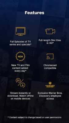 Warner Bros. Discovery Screeners app allows authorized Warner Bros. Discovery Partners, Clients, and Employee the ability to preview and download or stream Warner Bros. Discovery TV and Film content. Pre-authorization from a Warner Bros. Discovery Contact, and a login credentials are required to use the app.